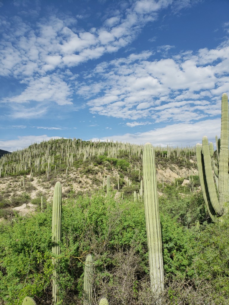 Another highlight in Zapotitlán Salinas is Cuthá, an archaeological site with an ancient burial cave at the top of the mountain. It’s a scenic hike with a spectacular view of the town of Zapotitlán Salinas from the peak. I will warn you that hiking among cactus is different from trekking in the forest. I spent hours when I returned from a recent hike pulling tiny cactus spikes from my fingers. ☹